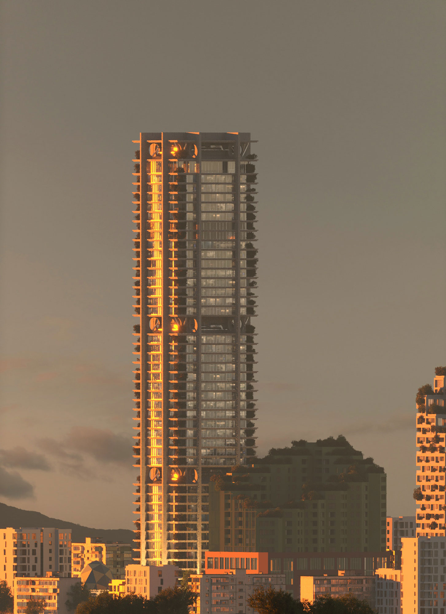 Since the launch of the Tirana 2030 Masterplan, developed by Stefano Boeri Architetti, UNLAB, and IND, the Albanian capital has pursued a strategy aimed at expanding its metropolitan scale while preserving and integrating green and public spaces. Within this context, the Oricon Tower is located on Dritan Hoxha Avenue, marking the western entrance to the city. The building acts as an “urban gateway,” mediating between the established city fabric and emerging developments along the corridor connecting the airport to the center.